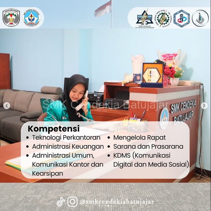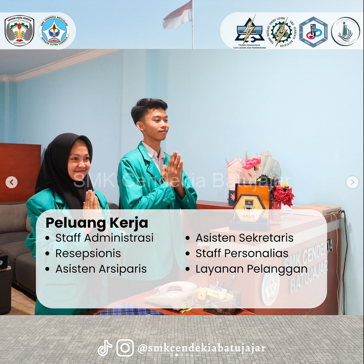 Jurusan Manajemen Perkantoran SMK Cendekia Batujajar membuka peluang karier menjanjikan seperti Staff Administrasi, Resepsionis, Layanan Pelanggan, hingga Staff Personalia.