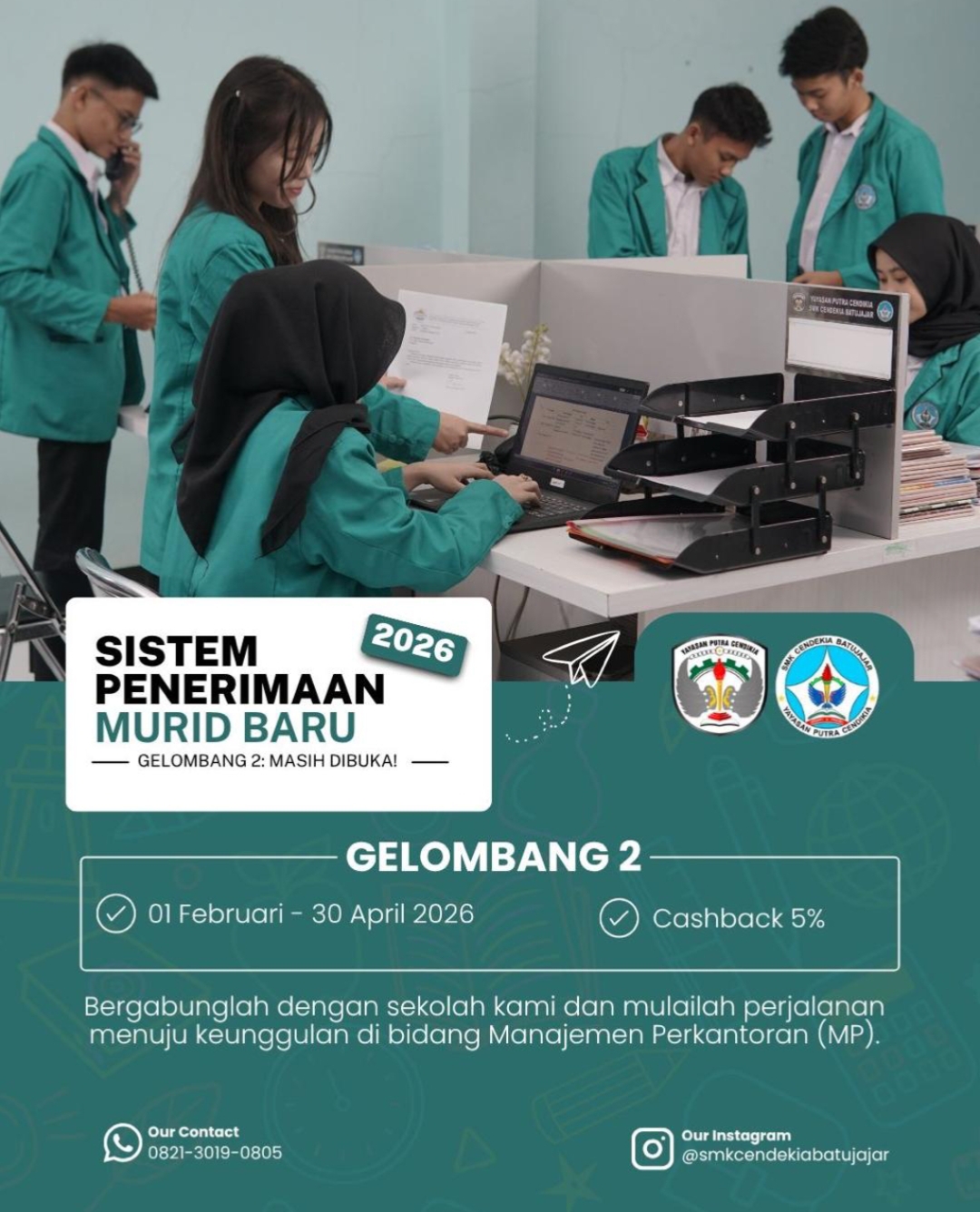 Hayo, siapa yang masih galau milih sekolah? Gak usah bingung lagi, SMK Cendekia Batujajar jawabannya! Buat kamu yang pengen punya skill kantoran yang pro dan siap kerja, jurusan Manajemen Perkantoran (MP) lagi nungguin kamu nih.